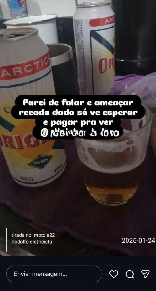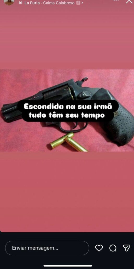 A cadeia na qual Rodolfo se refere, é por conta justamente a sua prisão com base na Lei Maria da Penha, contra a ex-esposa. Imagens obtidas com exclusividade pelo Portal mostram que ele a ameaçava abertamente em uma rede social, inclusive com uma arma de fogo, que não se sabe se é real.