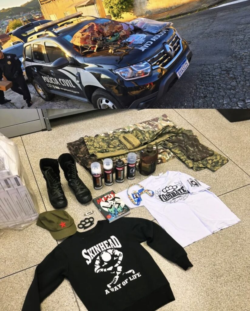 As buscas resultaram na apreensão de diversas armas brancas (facas, machadinha, canivetes, espadas), socos-ingleses, tcheco, balestras (arco e flecha), barraca de acampamento, spray de pichação, fardamento paramilitar, algemas, arma de airsoft e isqueiros em formato de granada de mão. Os policiais também apreenderam dispositivos informáticos, como celulares, computadores, pen drives, videogame e máquinas digitais.